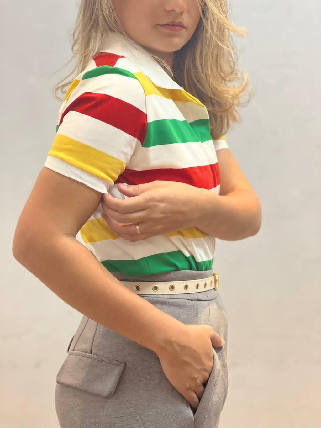 Listras verde/amarelo: verde, amarelo, vermelho e off white.